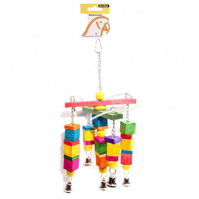 Planet Pet introduces the Avi One Bird Toy Leather Rope Coloured Wood Cube with Bell, designed to keep your feathered friends entertained and stimulated. This versatile bird toy combines the durability of natural wood blocks, the excitement of vibrant colours, and the captivating sounds of tinkling bells.