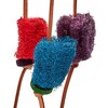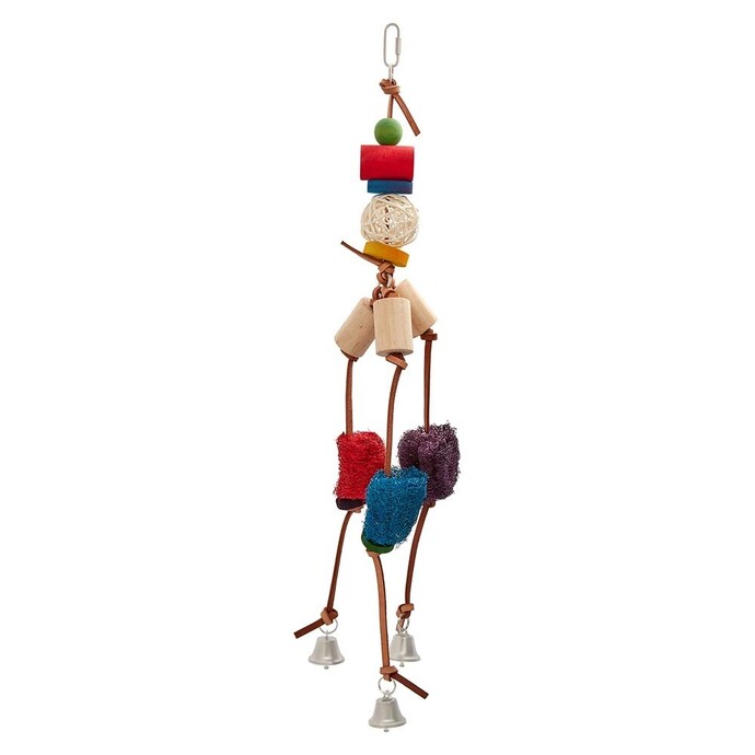 This engaging Avi One bird toy provides hours of entertainment for birds as they climb, slide, chew, and play. It incorporates a ringing bell, a chewable yet durable loofah, and wicker balls for extra stimulation. The Leather Mobile with Loofah & Wicker Balls Bird Toy is perfect for promoting healthy activity and happiness among your pet birds.