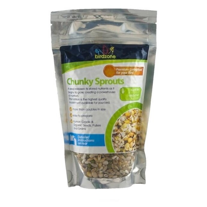 Please be aware that this product is not available for delivery to Western Australia or Tasmania. Give your bird a delicious, life-giving meal with Birdzone Chunky Sprouts, and invest in their long-term health and happiness.