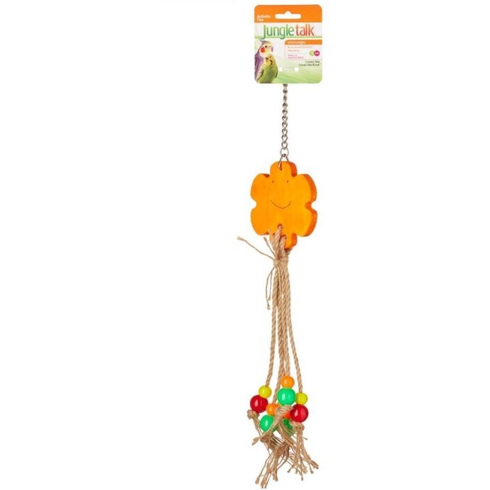 The Jungle Talk Loves Me Knot is an exciting and entertaining pet toy designed to provide your pet bird with hours of fun and engagement. This interactive toy features a unique combination of high-quality wooden pieces, colourful beads, and durable cotton ropes. The carefully crafted design stimulates your bird’s natural instincts for preening, playing, and maintaining their beak health.
