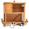 Maintaining a clean environment is crucial for your pets' wellness, and this hutch facilitates it with the inclusion of an easy-to-use pull-out cleaning tray, complete with a grate. The multiple access doors allow for easy interaction with your pets and make feeding, cleaning, and petting convenient and stress-free.