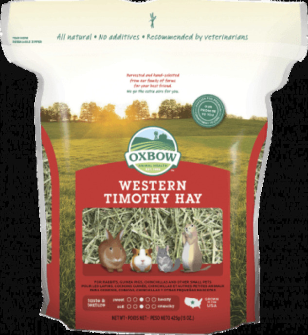 High-quality hay for small animals: Oxbow Western Timothy Feeding Hay offers optimal nutrition for bunny rabbits and Guinea Pigs, providing a balanced diet that promotes healthy digestion and regularity. Sourced from high-quality Timothy grass, this hay is enriched with long fibres that aid in proper gastrointestinal function.