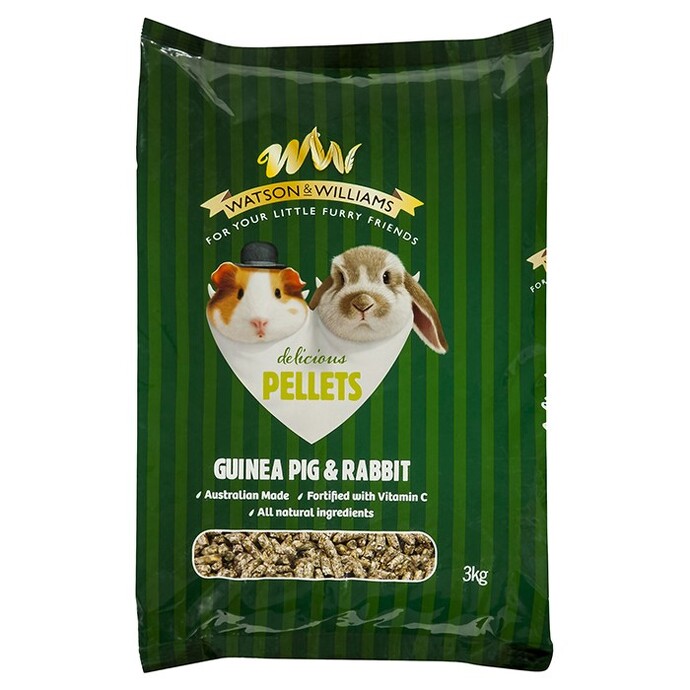 Presenting the Watson & Williams Guinea Pig & Rabbit Pellets, a thoughtfully crafted food solution designed to meet the nutritional requirements of rabbits and guinea pigs. Expertly blended using high-quality, natural ingredients sourced from Australia, this product provides essential nutrients such as protein and vitamin C to your beloved companions.