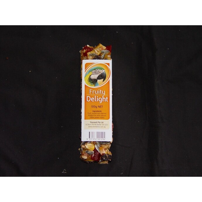 Wombaroo Avian Delight Bars offer an enticing and nutritious treat for pet birds, combining a delightful mix of seeds, nuts, and fruits. Each 100g Fruity Avian Delight Bar is designed to cate​r to your bird’s dietary needs, with added protein, vitamins, and calcium for optimal health.